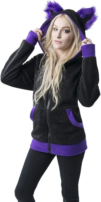 Purple cat ear hoodie clearance, Black purple Cat hoodie ears animal clearance