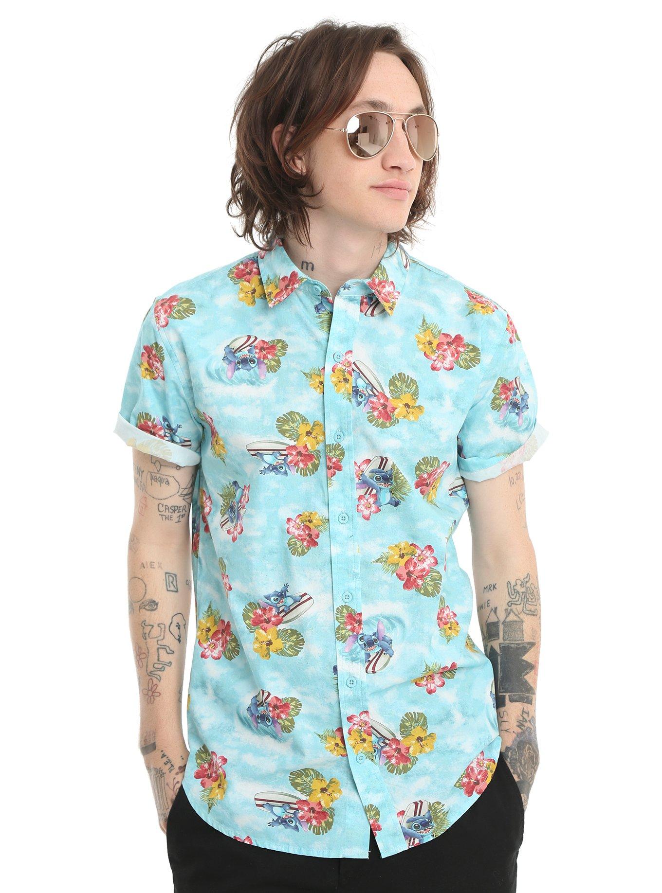 Stitch button up shirt clearance, Tropical Stitch Disney Inspired Men's clearance