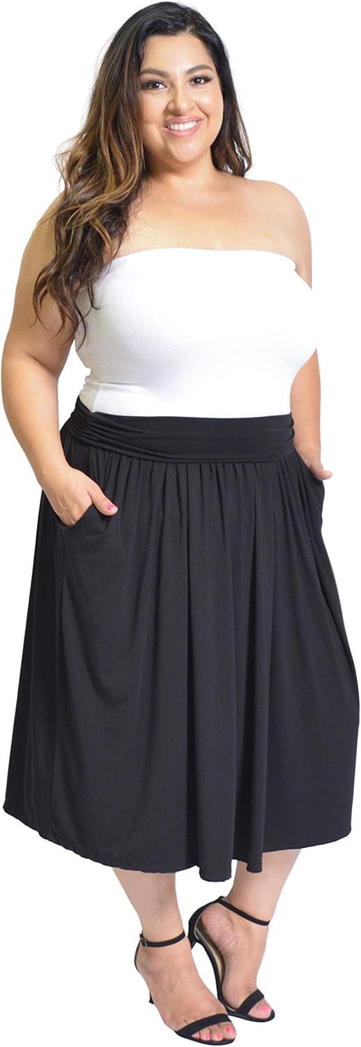 Plus size black skirt with pockets clearance, Plus Size Rounded Midi Pocket Skirt clearance