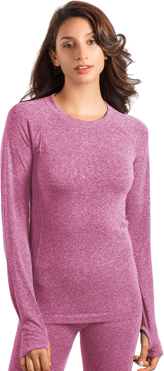 Womens thermal tops with thumb holes clearance, MD Women's Seamless Crew Neck Long clearance