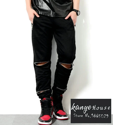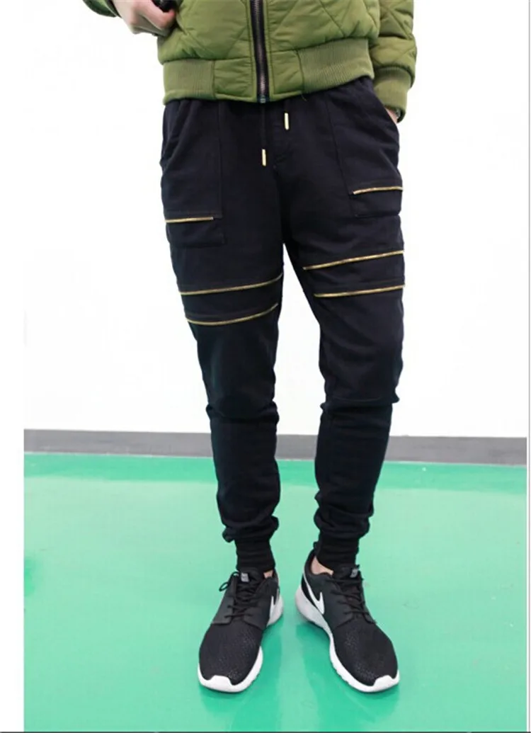 Knee zipper joggers clearance, NEW Men Black Joggers Knee Zipper Loose clearance