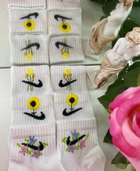 Nike socken blumen rosa clearance, Nike 3 rosa Blumen gestickte Socken - Etsy.de clearance