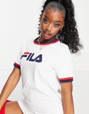Fila t shirt kleid clearance, Fila – T-Shirt-Kleid in Weiß mit großem Brust-Logo, exklusiv bei ASOS clearance
