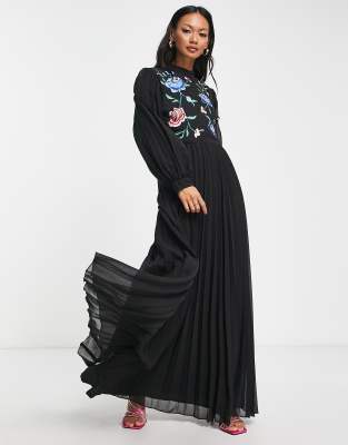 Kleid schwarz mit stickerei clearance, Schwarzes langes Kleid mit Stickerei clearance