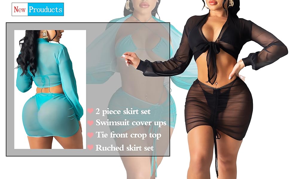 2 piece cover up clearance, Skirt Set Tie Front Crop Top clearance