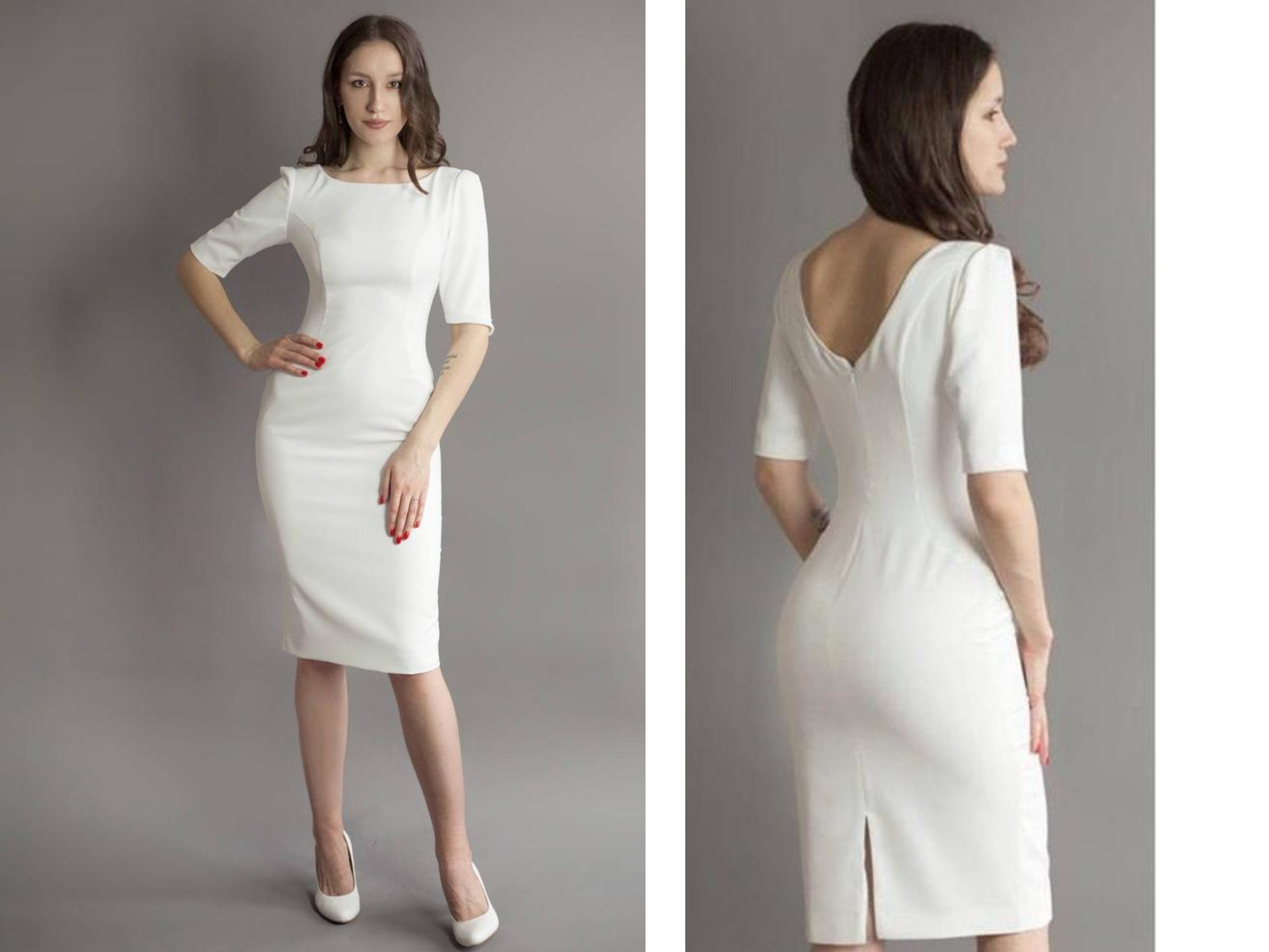 White casual dress for civil wedding clearance, Amanda casual midi civil wedding dress clearance