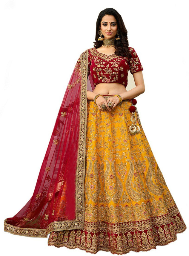 Flipkart red lehenga clearance, Buy FABLOOKNX Embroidered Semi Stitched clearance