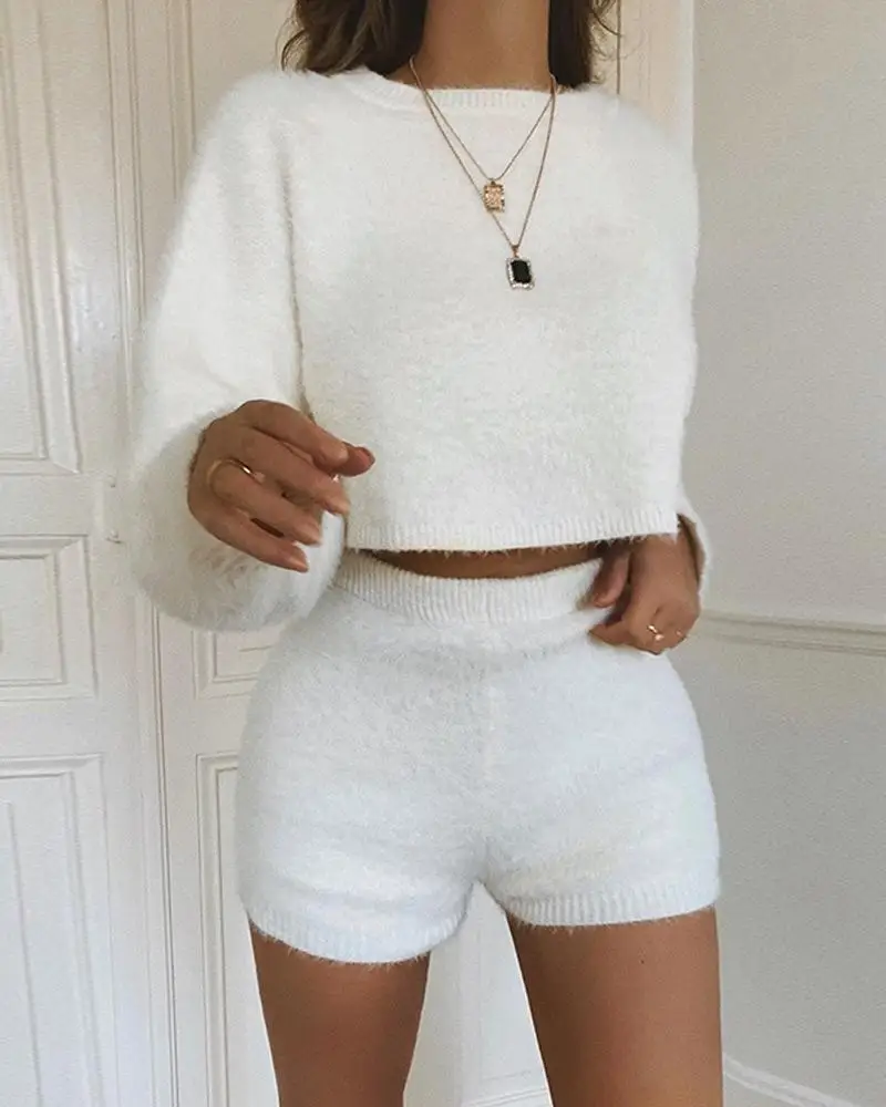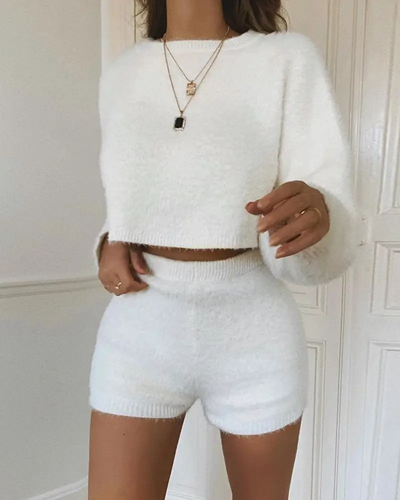 - Fluffy top and short set shop
