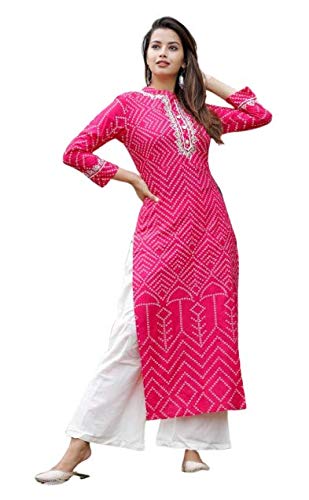 Pink bandhani kurti clearance, Bandhani Rayon Kurti clearance