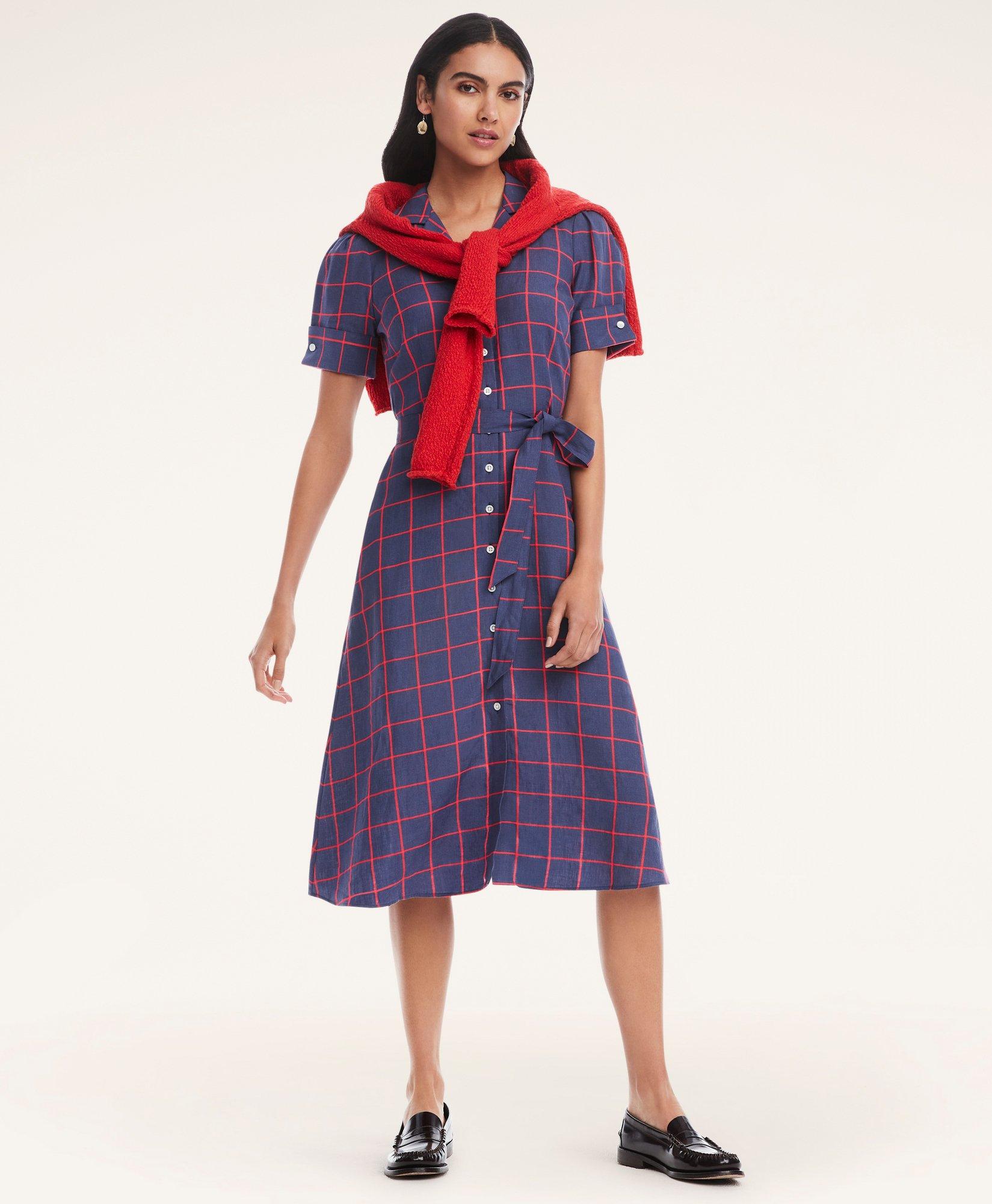 Brooks brothers shirt dress clearance, Linen Blend Windowpane Shirt Dress clearance