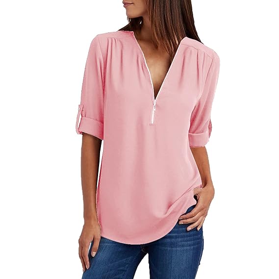 Quarter length shirts clearance, Women's Funky Elegant Top Shirt Fashion Loose Shirts Blouse Frontpocket Leave Quarter Length Sleeve Shirt clearance