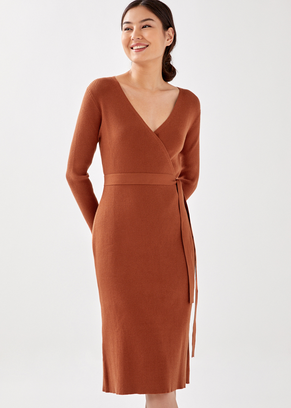 Knitted belted dress clearance