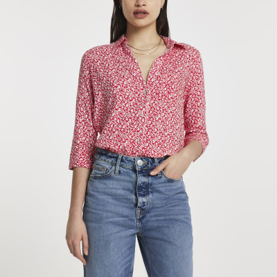 Floral print long sleeve top clearance, Red floral print long sleeve shirt clearance