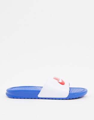 Nike slides red white blue clearance, Nike Benassi JDI slides in white/blue clearance