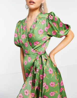 - Green floral wrap midi dress shop