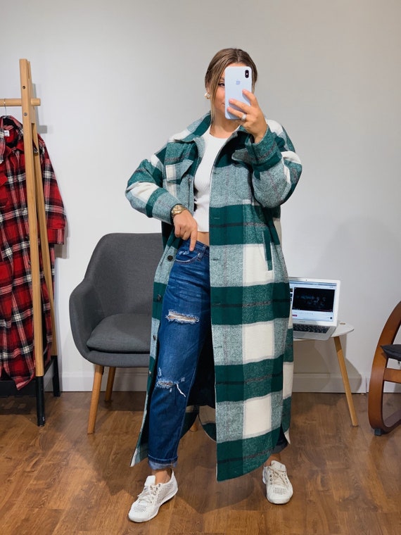Plaid coat oversized clearance, oversized tartan coat Promotions clearance