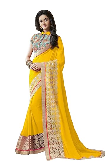 Amazon saree yellow colour clearance, Buy ROYORA FASHION Women Georgette clearance