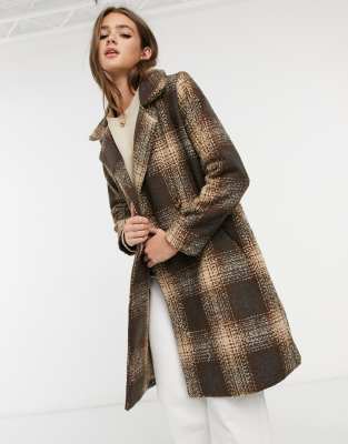 Checked brown coat clearance, Womens Brown Check Belted Wrap Coat clearance