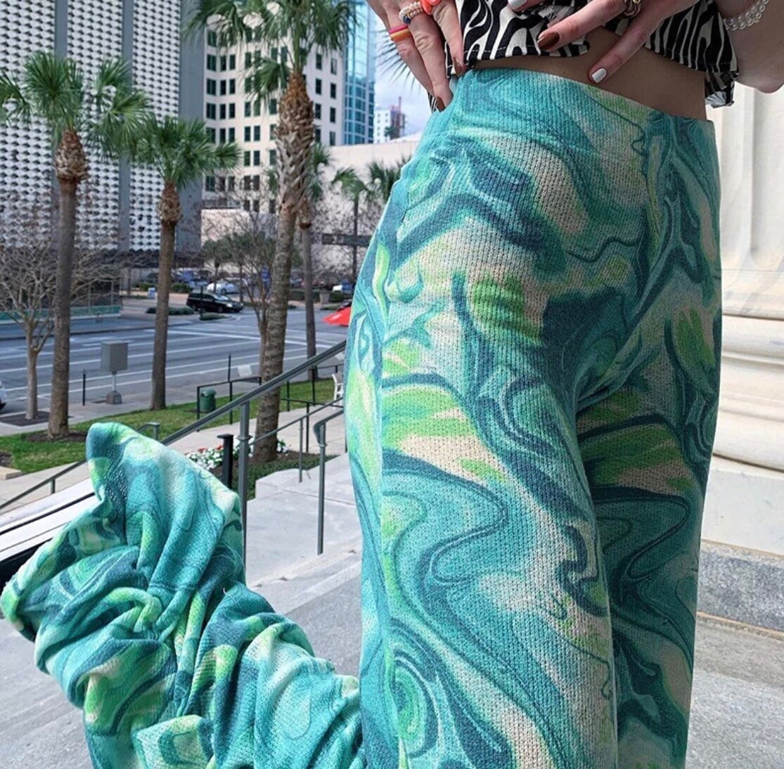 Lime tie dye print ruched hem printed knit joggers clearance