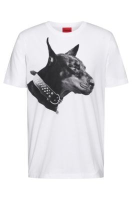 Hugo boss dog t shirt clearance, HUGO - Cotton-jersey T-shirt with dog clearance