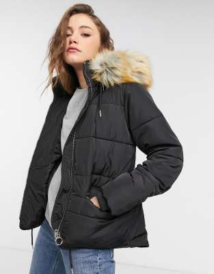 Topshop black fur hood coat clearance, Hooded Faux Fur Trim Puffer Jacket clearance