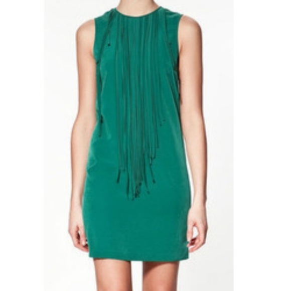 - Zara green fringe dress clearance