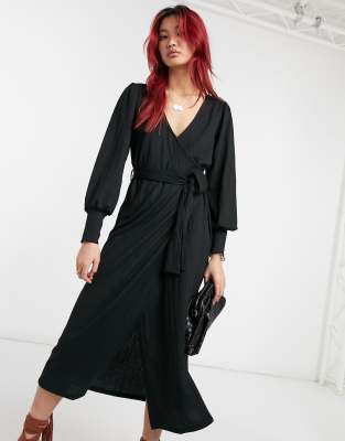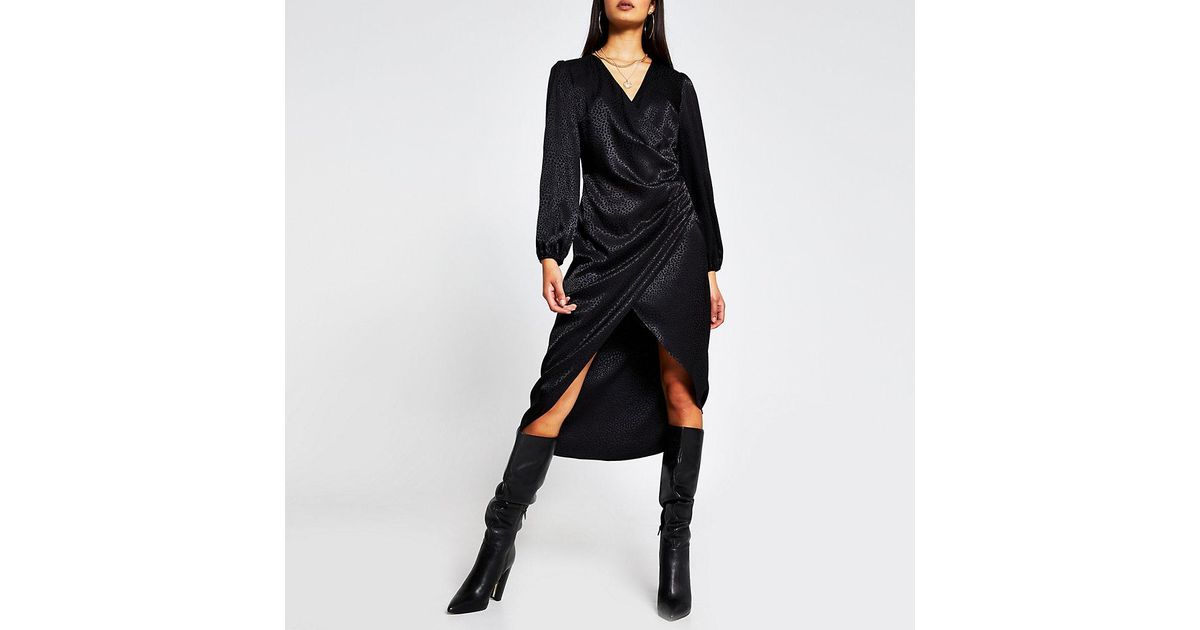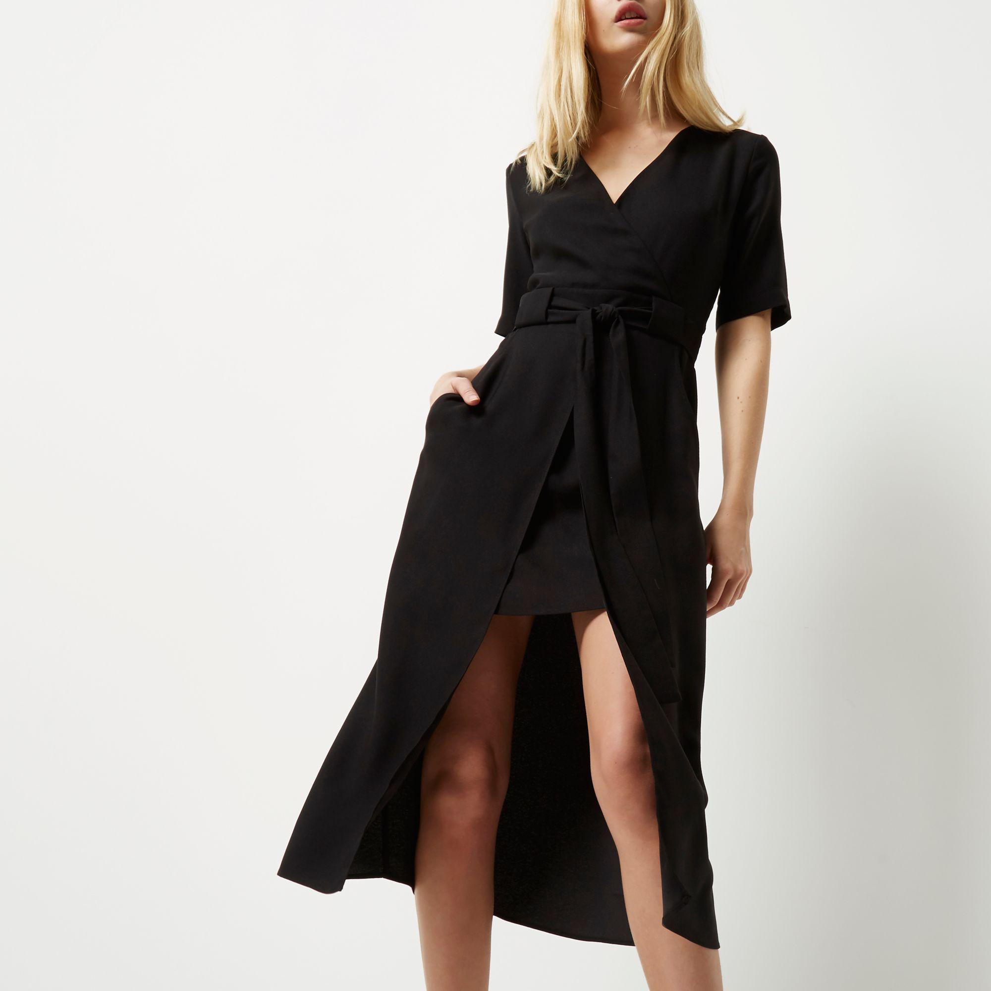 - River island black wrap dress shop