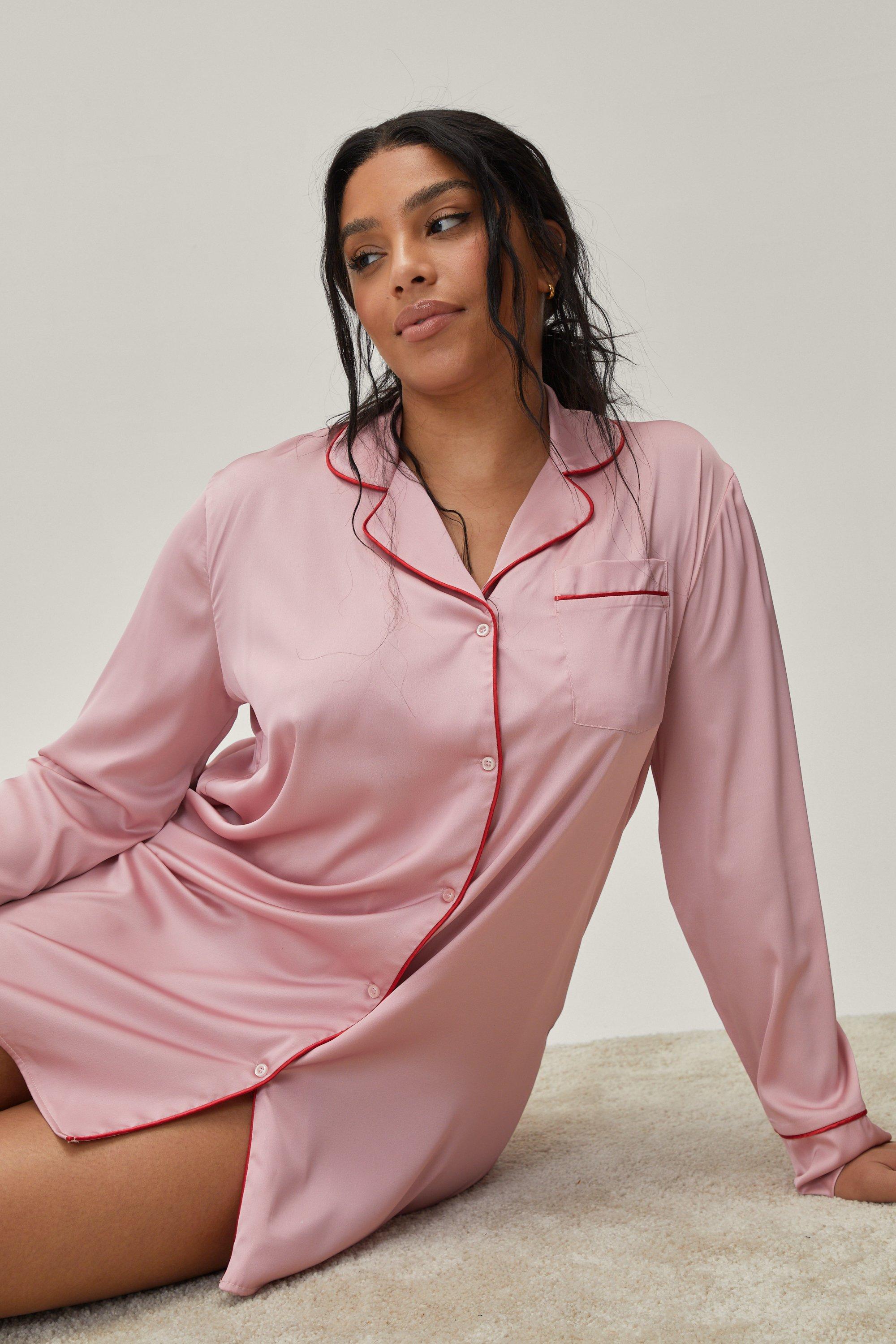 Plus size night shirts clearance, Plus Size Satin Contrast Piping Night clearance