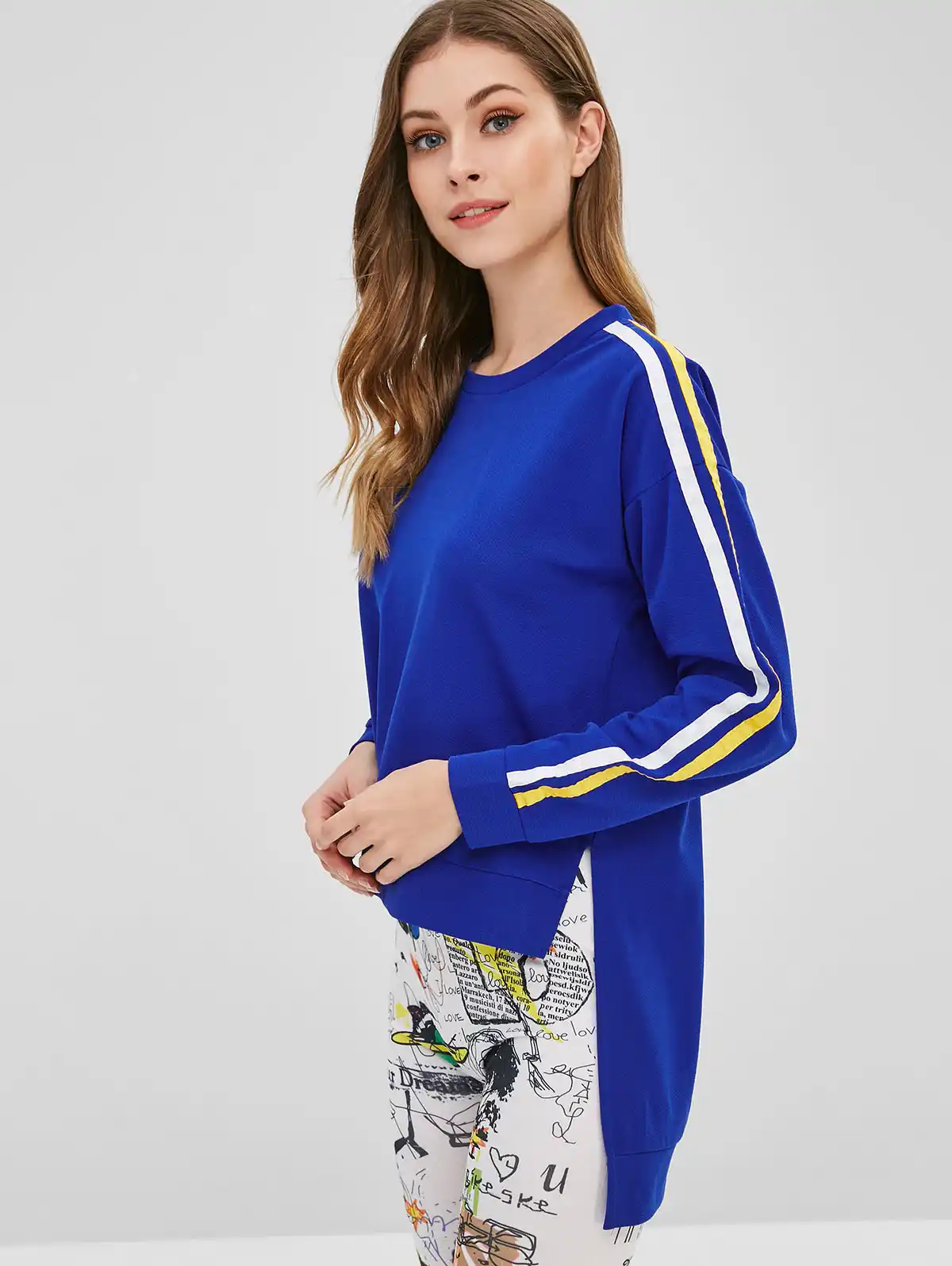 High low sweatshirt clearance, ZAFUL Striped Patch Slit High Low clearance