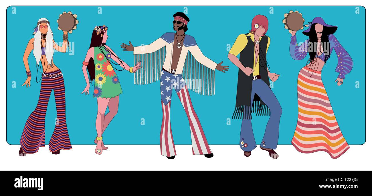 Hippiekleidung clearance, Gruppe von fünf tragen hippie Kleidung der 60er und 70er Jahren tanzen Stock-Vektorgrafik - Alamy clearance