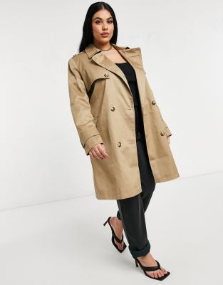 Curve trench coat clearance, ASOS DESIGN Curve trench coat in stone clearance