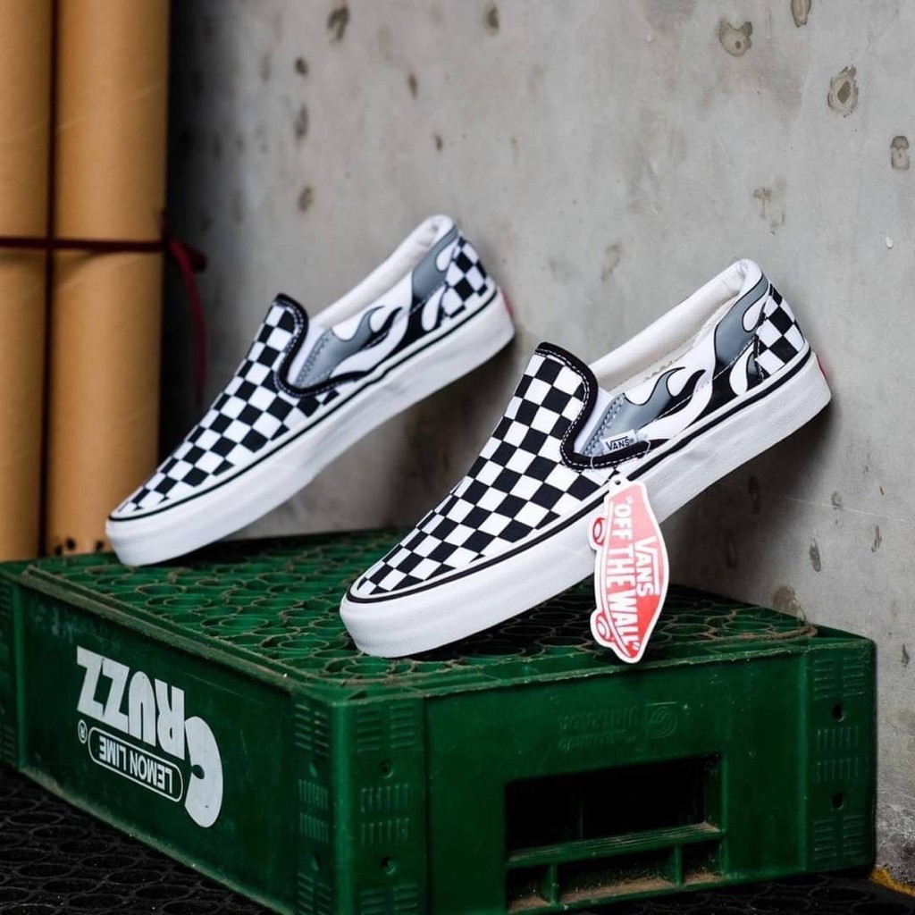 - Vans slip on checkerboard flame black white clearance