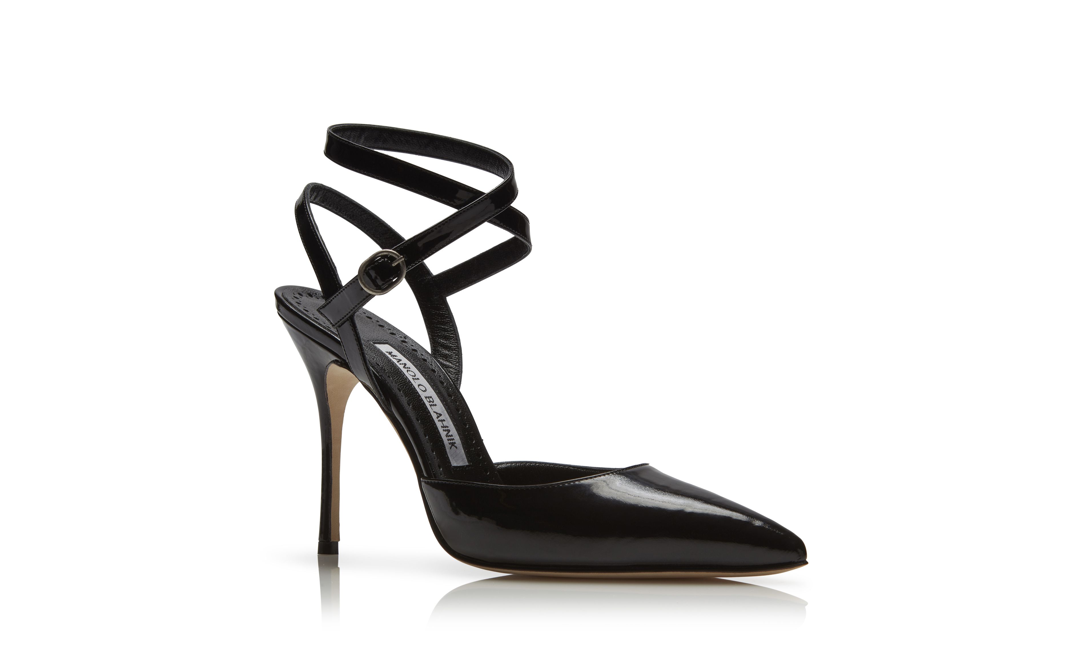 - Patent leather pumps with ankle strap clearance