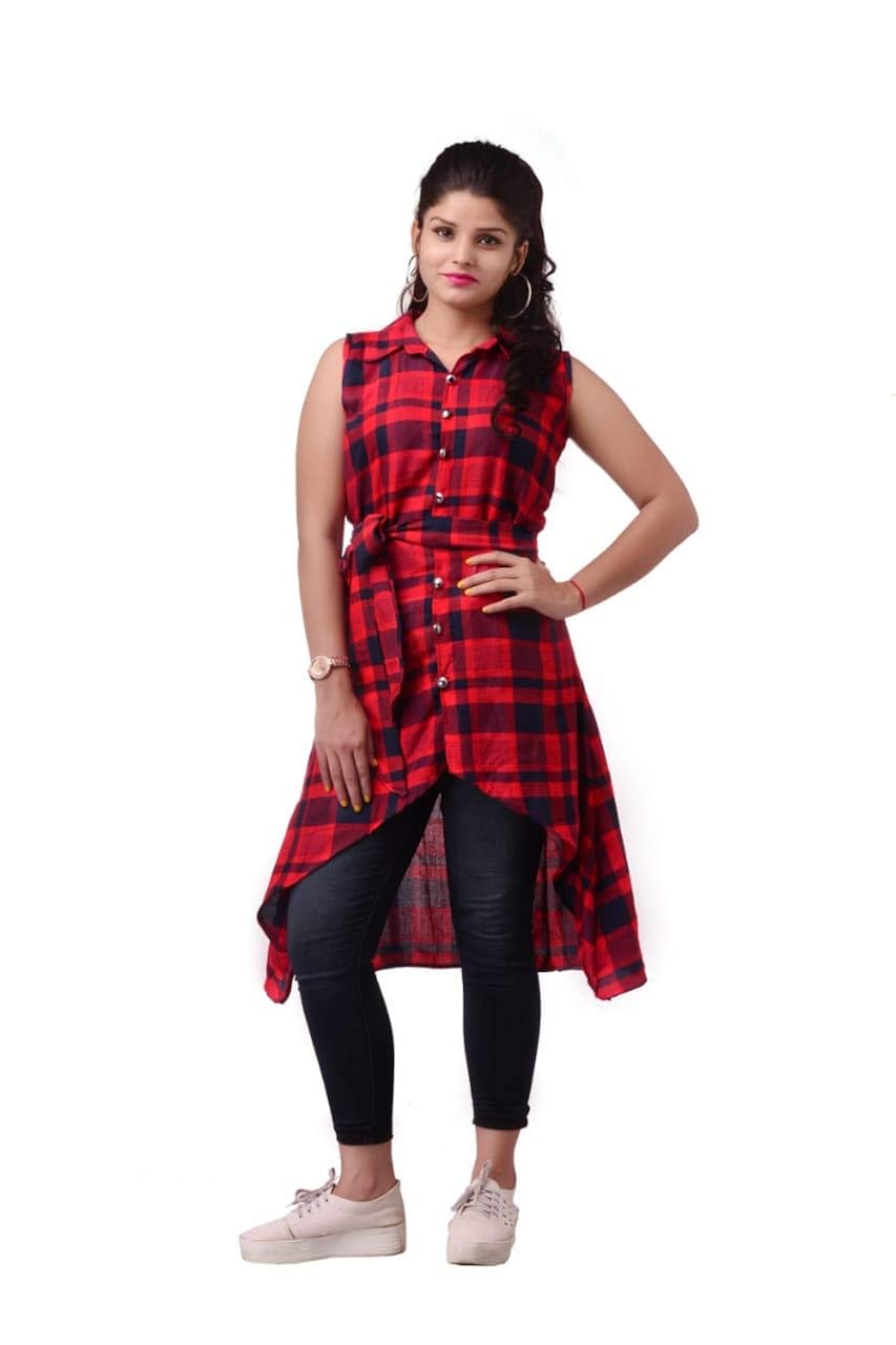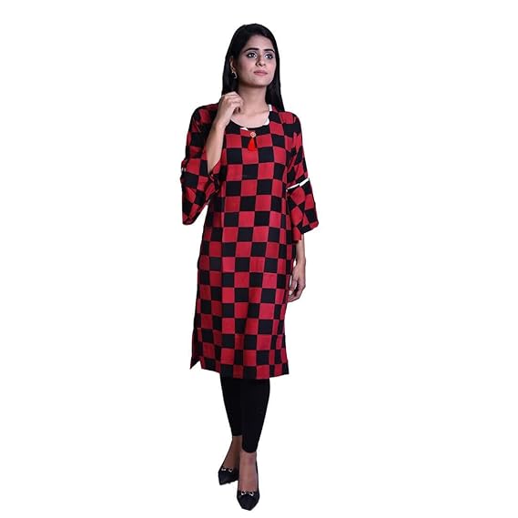 Red and black check kurti clearance, Nyari Cotton Fabric Check Casual Kurti clearance