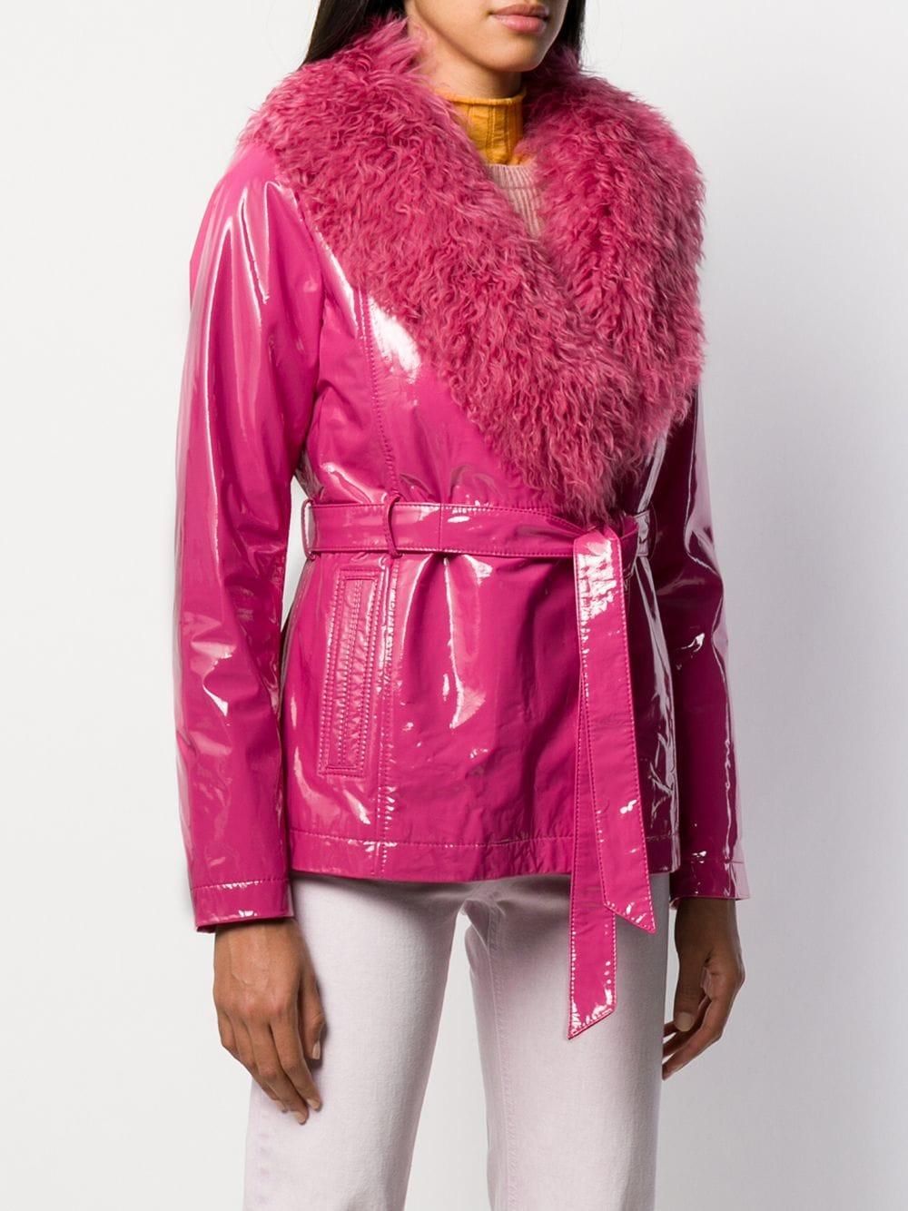 Pink wet look coat clearance, Pink Wet Look Faux Fur Hood Jacket clearance