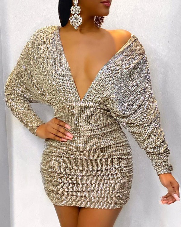 Ruched sequin dress clearance, Surplice Wrap Ruched Sequins Bodycon clearance