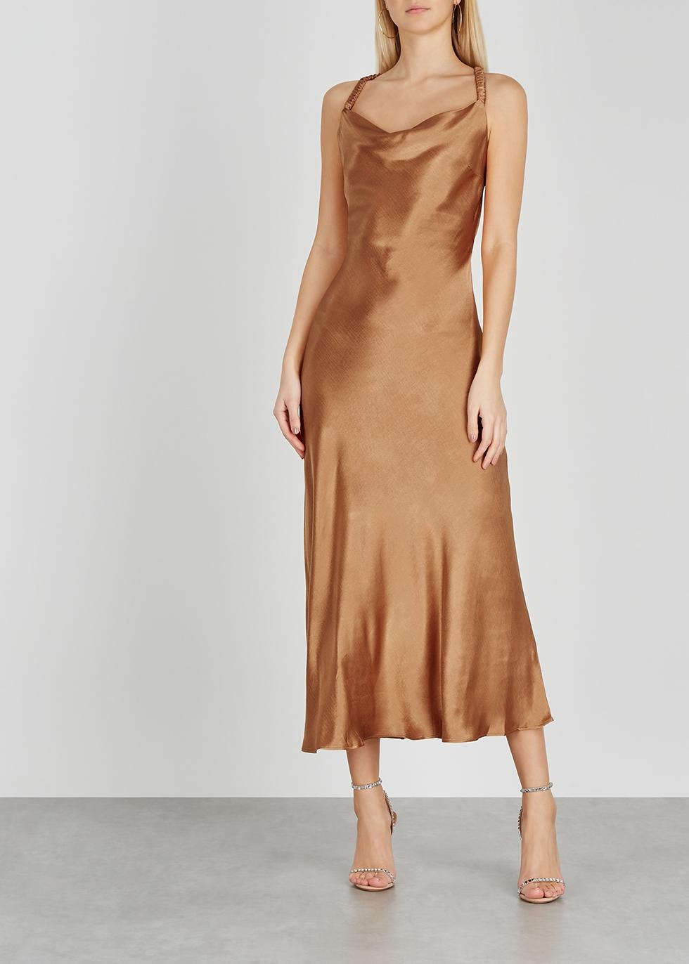 Caramel satin dress clearance, Bridge Lana Caramel Satin Midi Dress clearance