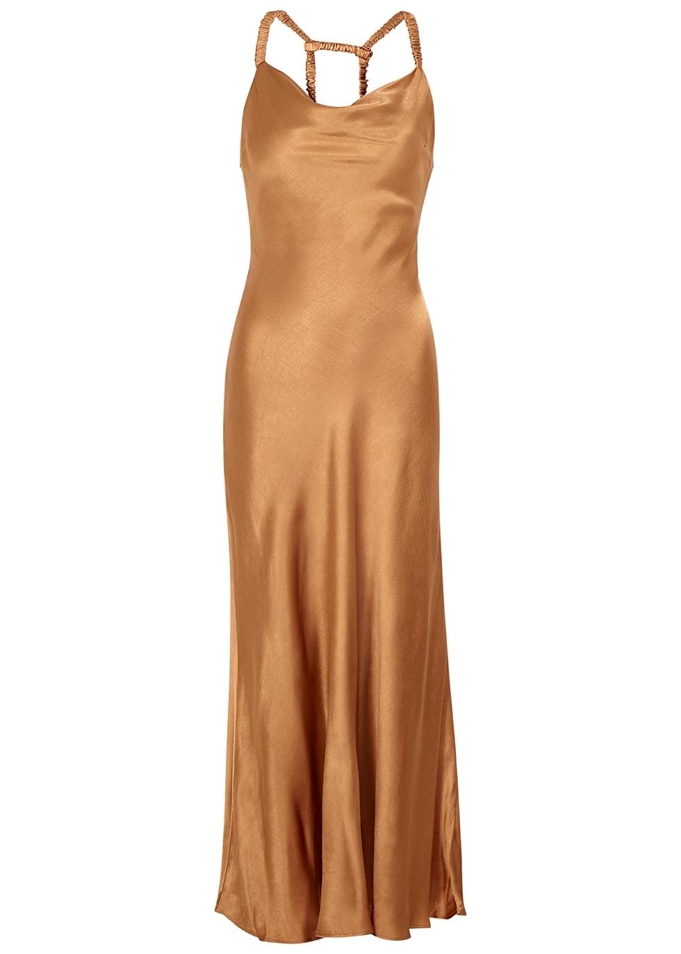 Caramel satin dress clearance