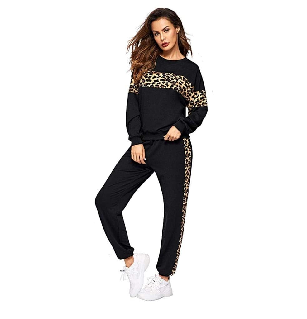 Animal print tracksuit womens clearance, vogue 2pcs women Leopard print clearance