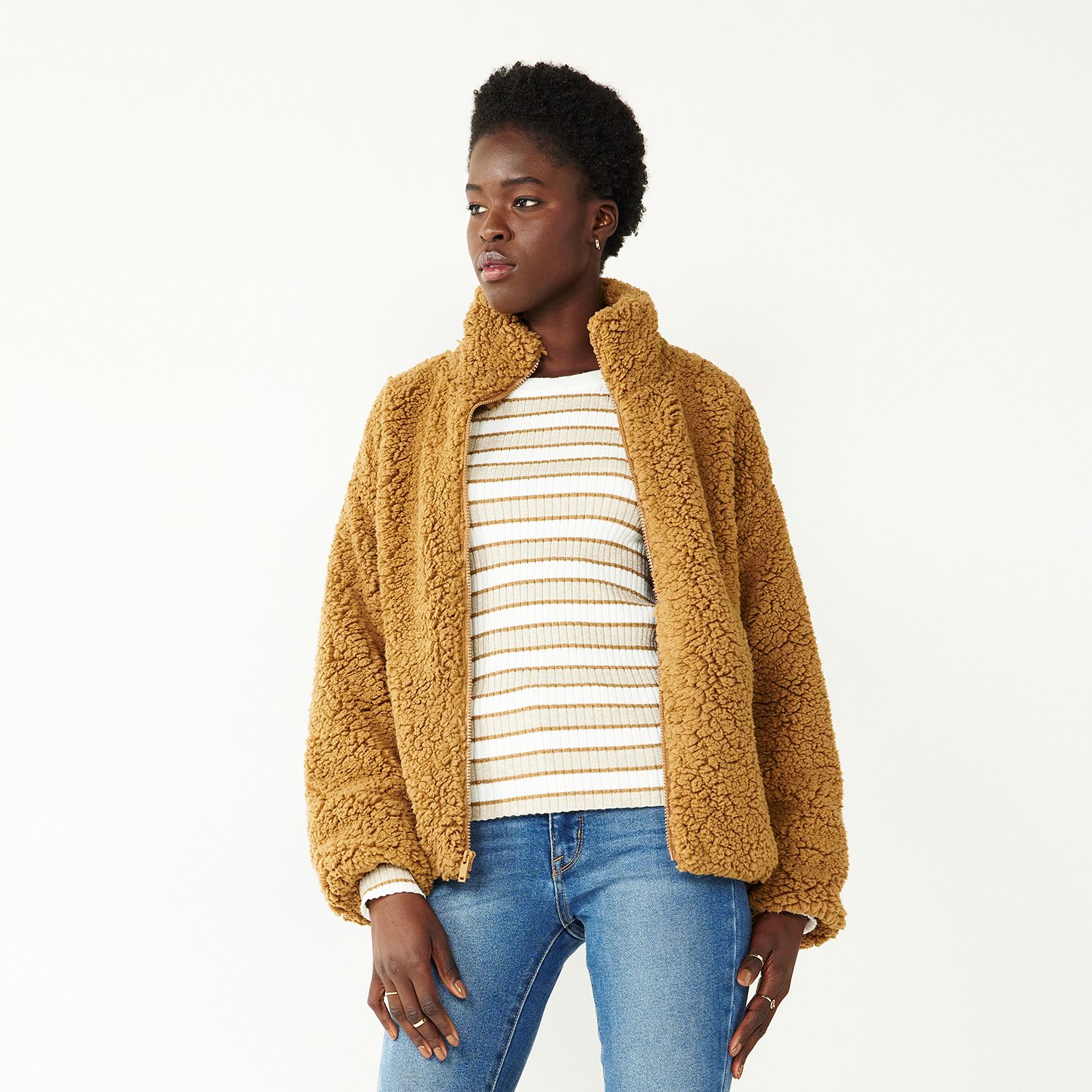 Women's nine west zip up teddy jacket clearance, Women's Nine West Zip Up Teddy Jacket clearance