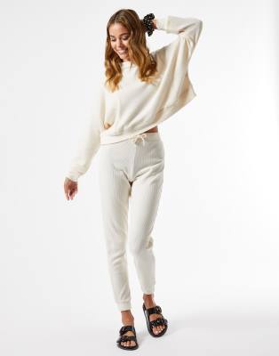 Cream ribbed joggers clearance