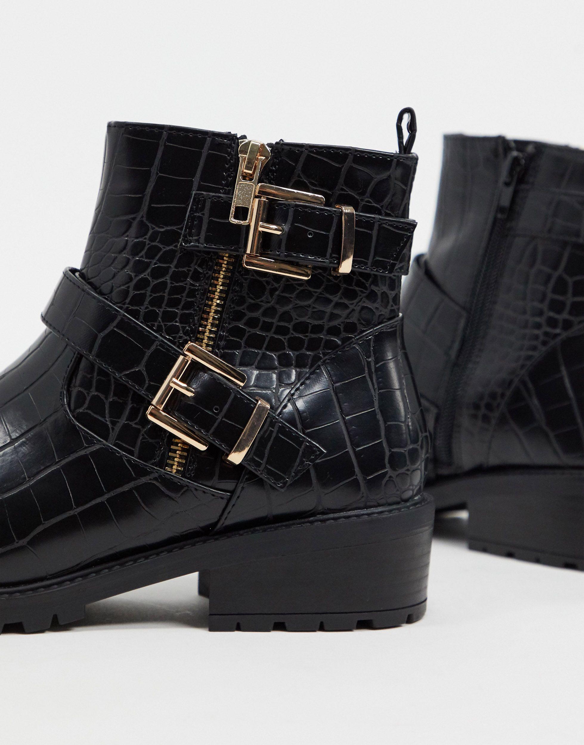 Flat croc boots clearance, lace up flat boots in black croc | ASOS clearance