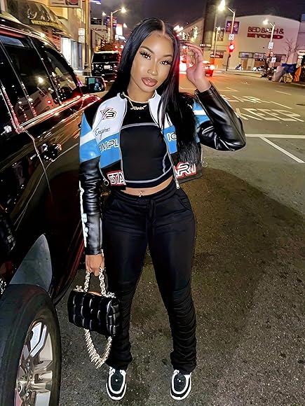 Lederjacke bauchfrei clearance, ZUAVIALA Damen-Lederjacke, PU-Jacke, langärmelig, Motorrad, bauchfrei, Kunstleder, leichte Damenmäntel clearance
