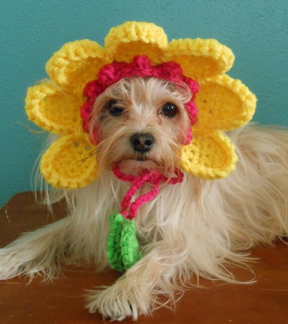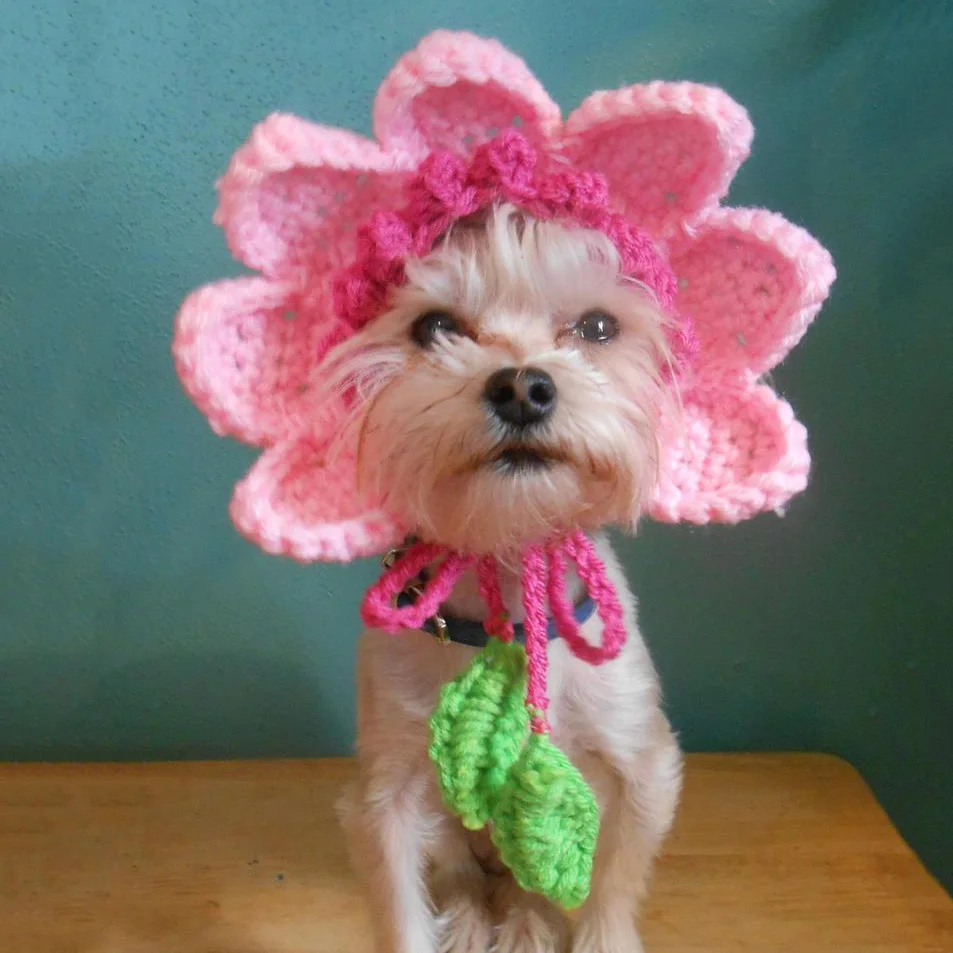 Dog flower hat clearance, Crocheted Flower Hat for Cat or Dog clearance