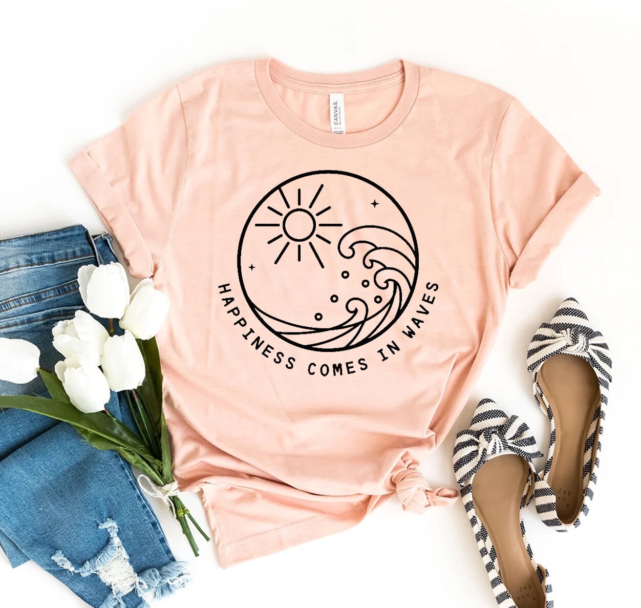 - Happiness comes in waves shirt shop