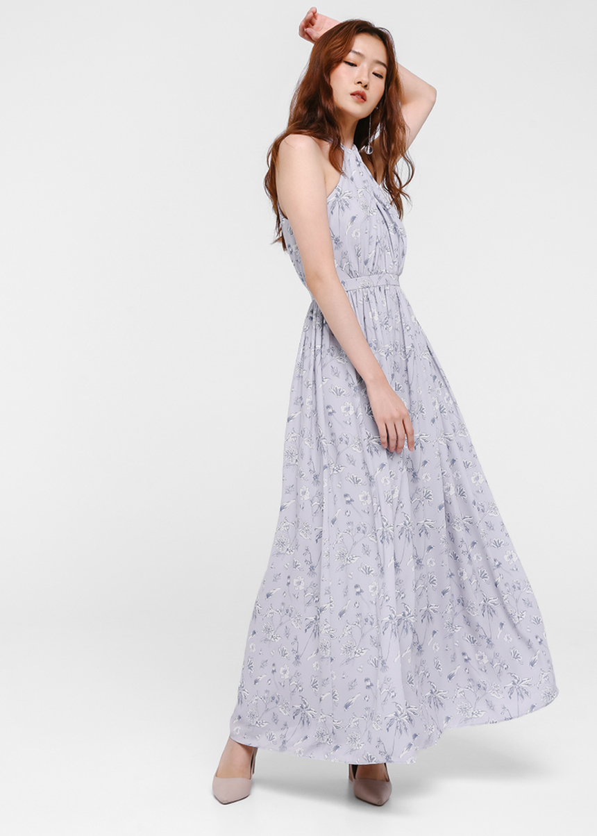 - Printed halter maxi dress
