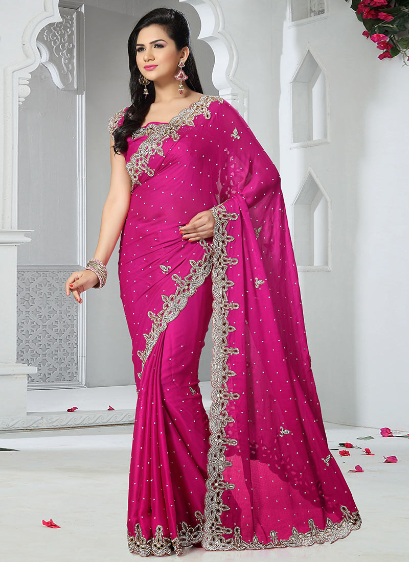 Magenta chiffon saree clearance