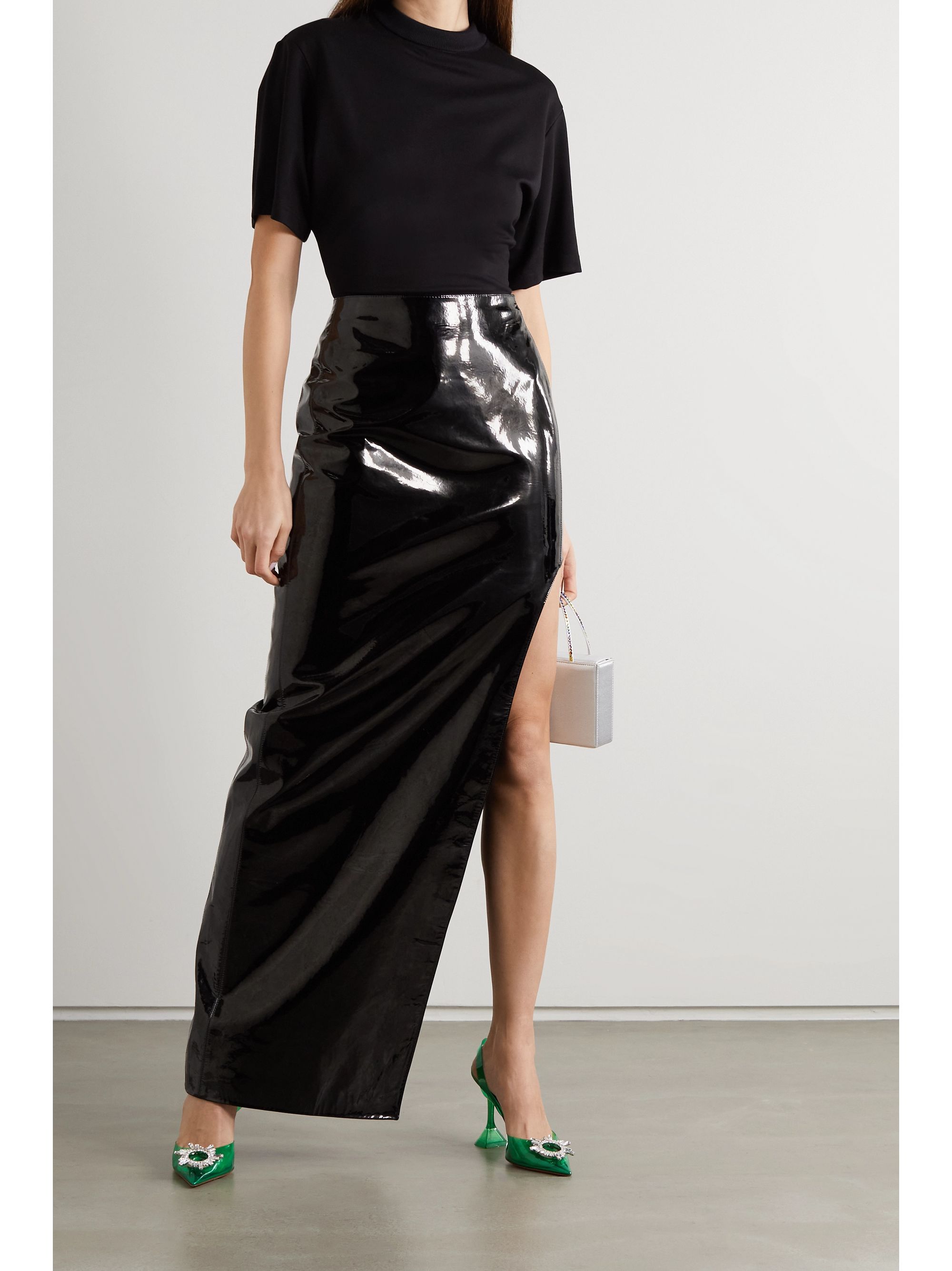 Black leather maxi skirt clearance, Black Patent-leather maxi skirt | DAVID clearance