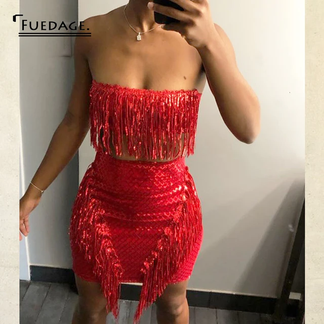 Red sparkly 2 piece set clearance, feather sequin two piece,www.macj.com.br clearance