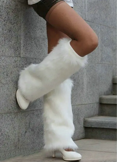 White fur leg warmers clearance